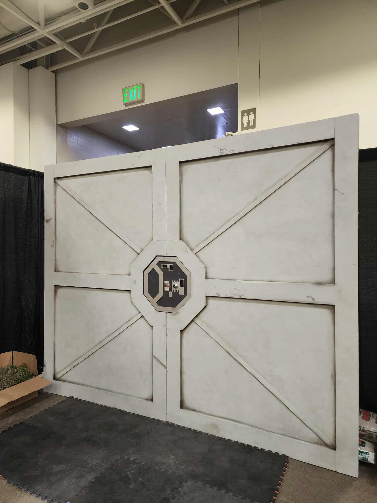 Phase 1 of a build resembling the blast door from the Endor Bunker as seen in ROTJ. I designed and helped build door as part of team of about a half dozen volunteers. I created the center medallion cutting the main shapes on a laser cutter and then painting, adding greeblies and weathering.