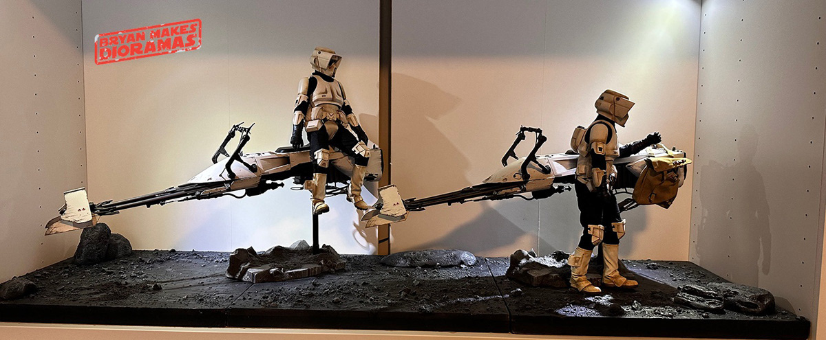 Commissioned diorama base for scene from the Mandalorian season two featuring Jason Sudeikis and Adam Pally.