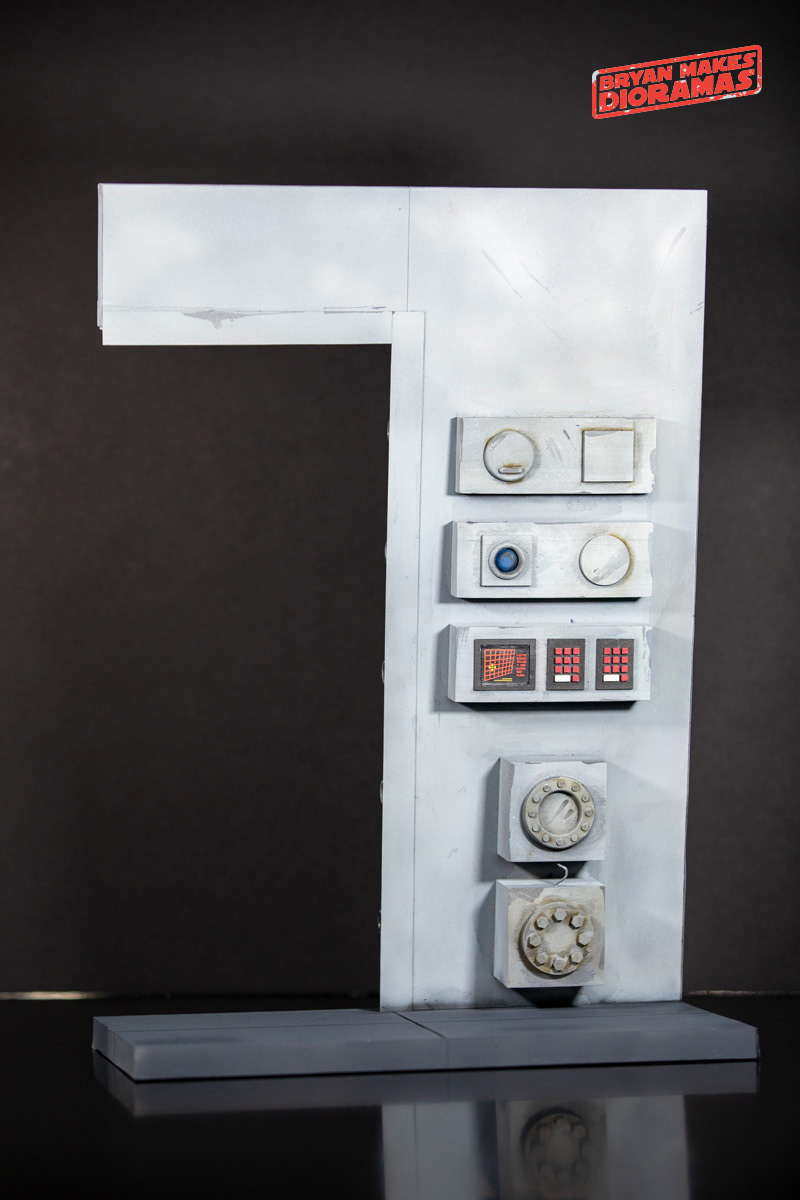 Commissioned sixth-scale diorama build to display a custom Imperial AT-AT gunner by Hasse Customs. Although we didn’t see them in the original trilogy, what if the AT-AT had gunner doors? This diorama answers this question. The diorama shows both the outside and inside of the gunner door. The diorama is constructed out of foam with 3D printed parts added. It is painted and weathered to show age and use in battle.